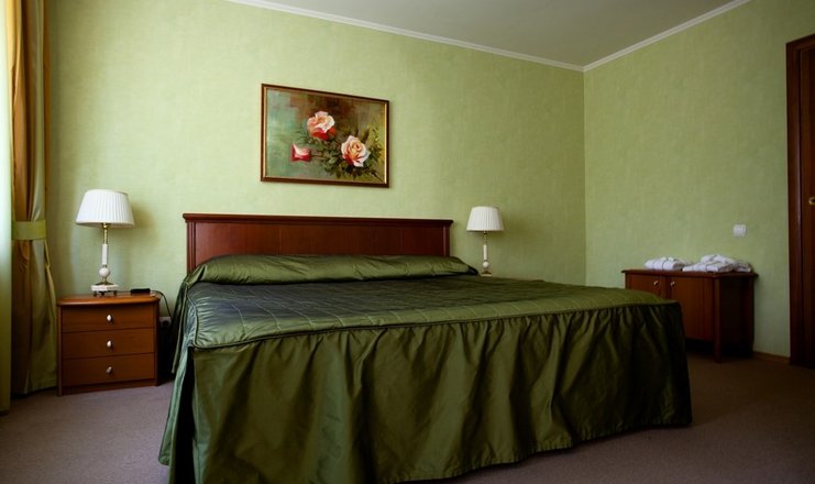 В номере: вешалка, зеркало, кровать двуспальная, прикроватные тумбочки, стол, стулья, шкаф, индивидуальная система обогрева, кондиционер, микроволновая печь, сейф, телевизор, телефон, холодильник, чайный набор посуды, электрочайник