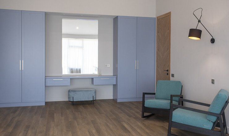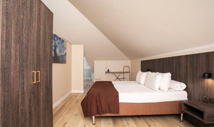 В номере: кровати двуспальные, кухонная мебель, набор мягкой мебели, прикроватные тумбочки, стол, столик журнальный, стулья, шкаф, гладильная доска, кондиционер, микроволновая печь, набор посуды, сейф, сплит-система, телевизор ЖК: 3, телефон, утюг, холодильник, чайная станция и бутилированная вода