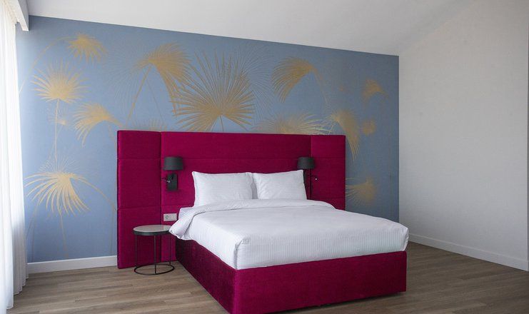 В номере: кровати двуспальные, кухонная мебель, набор мягкой мебели, прикроватные тумбочки, стол, столик журнальный, стулья, шкаф, гладильная доска, кондиционер, микроволновая печь, набор посуды, сейф, сплит-система, телевизор ЖК: 3, телефон, утюг, холодильник чайная станция и бутилированная вода