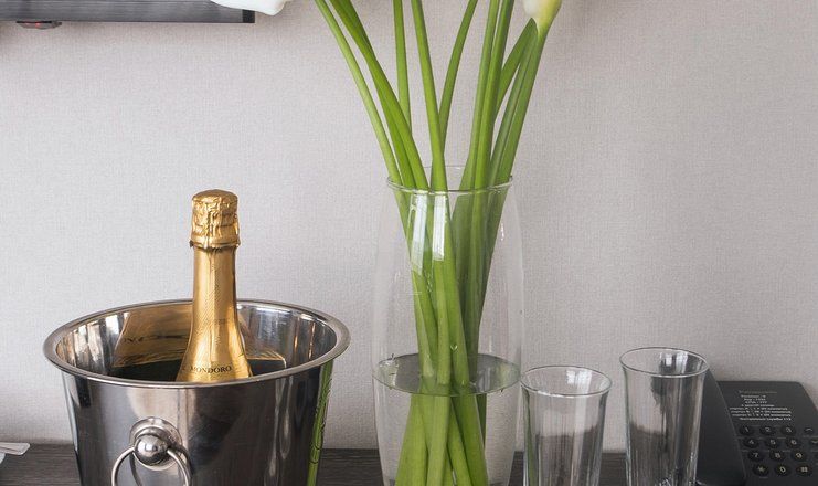 В номере: кровати односпальные /одна двуспальная кровать, прикроватные тумбочки, стол, столик журнальный, стулья, тумба багажная, шкаф, кондиционер, сейф, телевизор ЖК, телефон, холодильник, чайная станция и бутилированная вода, чайный набор посуды, электрочайник